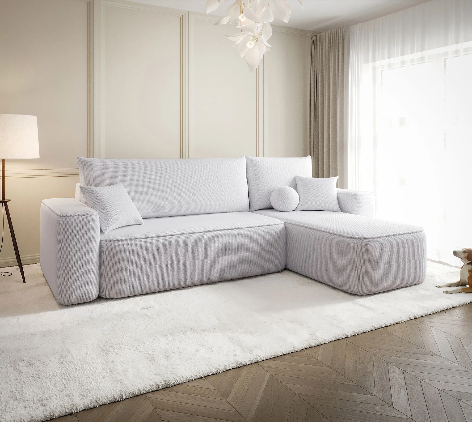 Jasnoszary narożnik z funkcją spania i pojemnikiem - Mossira 3X