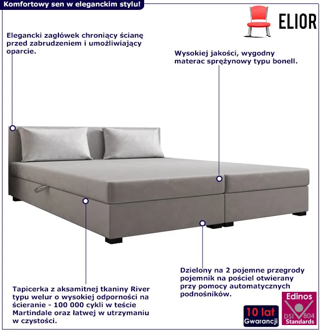 Dotyczy: Ciemnoszare welurowe łóżko dwuosobowe Efox 4X - 3 rozmiary