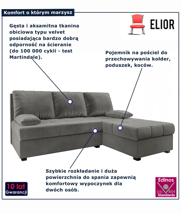 Dotyczy: Czarny welurowy narożnik rozkładany - Montiero