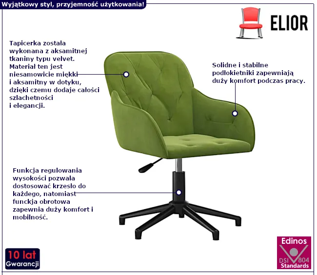 Zamów już dziś fotel do biurka dla dzieci bez kółek Almada 8X marki Elior i wprowadź do pokoju Twojego dziecka komfort i styl za jedyne 498 zł. Niech każda chwila spędzona przez Twoje dziecko przy nauce stanie się przyjemnością dzięki wyjątkowemu komfortowi i stylowi. Wybierz jakość i wyrafinowanie, które podkreślą charakter każdej przestrzeni. Inwestycja w fotel krzesło obrotowe do biurka dla dzieci bez kółek Almada 8X to inwestycja w komfort i prestiż w miejscu nauki Twojego nastolatka.