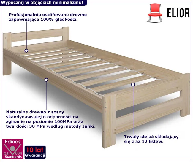 Dotyczy: Drewniane pojedyncze łóżko sosnowe ze stelażem 100x200 - Logis 3X
