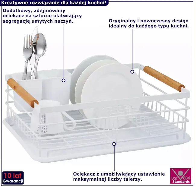 •  Elegancki wygląd suszarki do naczyń będzie pięknie prezentował się w każdej kuchni