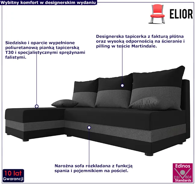 Dotyczy: Narożnik rozkładany szary + czarny - Nomi
