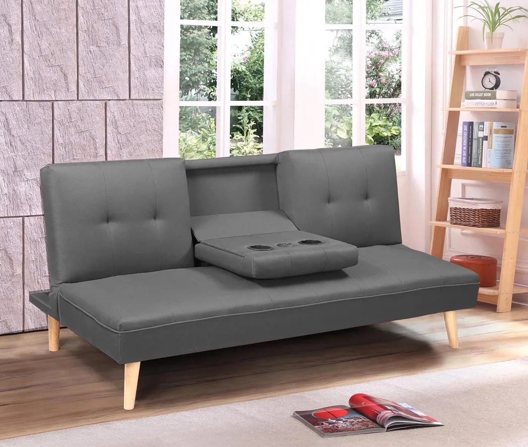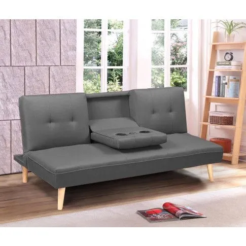 Sofa Uzzi to praktyczny mebel przeznaczony do nowoczesnych wnętrz o niewielkim metrażu, kawalerek, wielofunkcyjnych pokoi dziennych i pokoi młodzieżowych. Jej kompaktowe rozmiary powodują, że mebel zmieści się w każdej przestrzeni, a jednocześnie jest wystarczająco komfortowy, by wygodnie mogły na nim siedzieć dwie osoby. Sofa Uzzi to wyjątkowo atrakcyjna alternatywa dla tradycyjnego zestawu wypoczynkowego. Możliwość złożenia środkowej części oparcia zamienia mebel w zestaw dwóch wygodnych szerokich foteli wypoczynkowych połączonych wspólnym blatem z wbudowanymi uchwytami na kubki lub puszki z napojem i gniazdem USB. Dodatkowym atutem sofy Uzzi jest możliwość jej rozłożenia, dzięki czemu łatwo zamienisz ten wypoczynkowy mebel w komfortowe łóżko i zyskasz dodatkowe miejsce do spania dla gości. Nowoczesny design sofy daje nieograniczone możliwości aranżacyjne. Doskonale dopełni pokój dzienny lub młodzieżowy utrzymany w skandynawskim klimacie. W nowoczesnym i klasycznym salonie zagra główną rolę jako rewelacyjny mebel wypoczynkowy. Prosta forma mebla, klasyczna kolorystyka z akcentem litego drewna w naturalnym kolorze w postaci doskonale wyważonych nóżek, nada przytulny ton aranżacjom loftowym i minimalistycznym. Dzięki zastosowaniu wysokich nóżek pod kanapą nie będzie gromadził się kurz, co jest szczególnie ważne dla alergików, a dodatkowo nadaje wizualnej lekkości kanapie i odrobinę charakteru retro. Czas zerwać z tradycyjnymi zestawami wypoczynkowymi, które zajmują mnóstwo miejsca. Czas na nowe kompaktowe meble, dzięki którym Twój czas wolny będzie czystą przyjemnością!