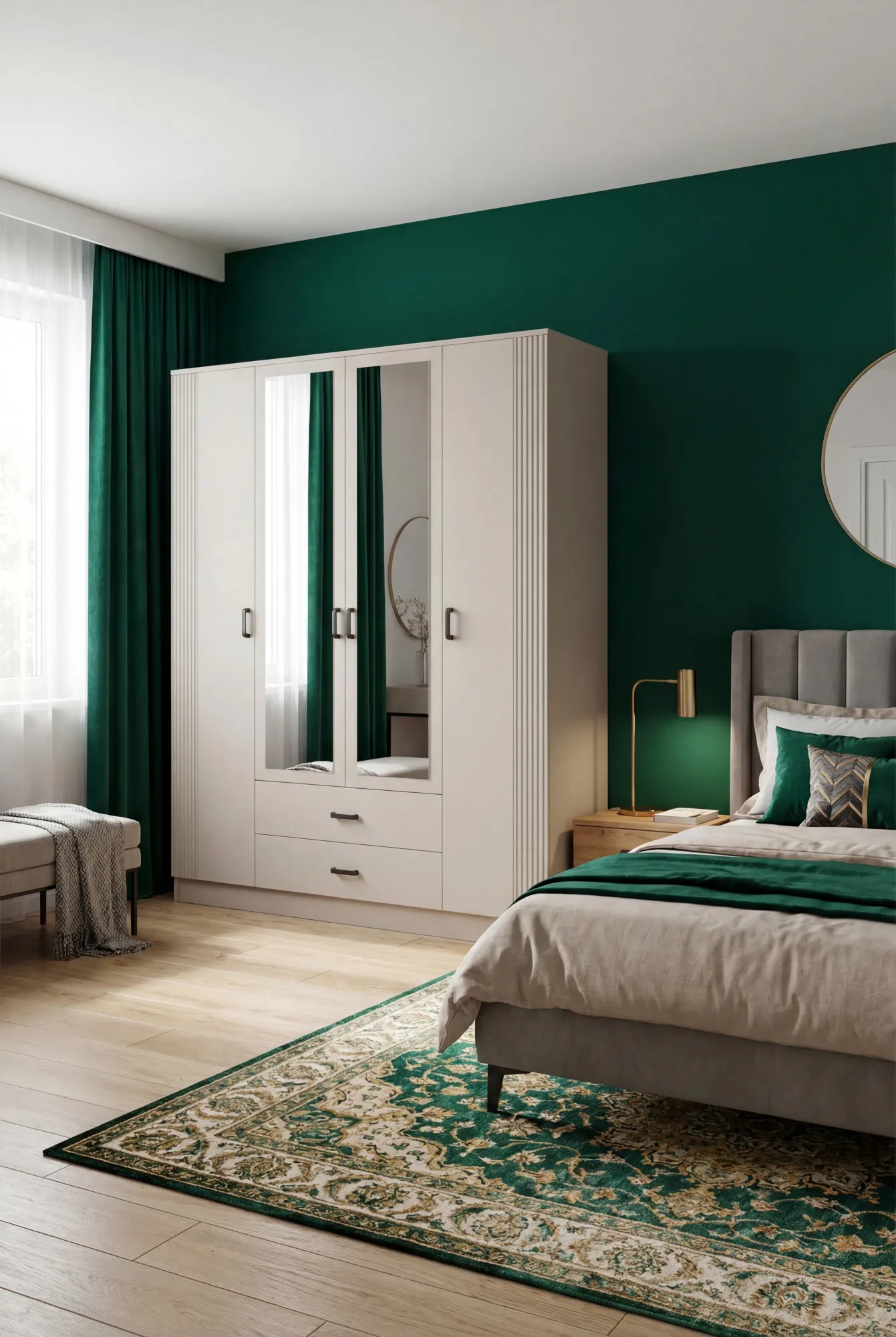 Kaszmirowa czterodrzwiowa szafa uchylna z lustrem - Veloris