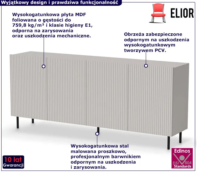 • Kolor: kaszmir. Kliknij w link i sprawdź także inne duże komody w sklepie Edinos.pl. Stwórz swój praktyczny zestaw mebli.