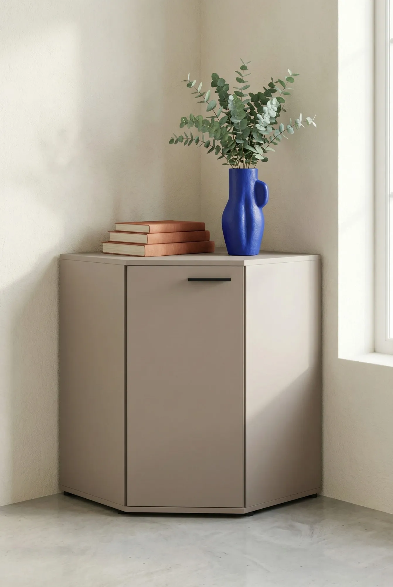 Dotyczy: Biała narożna szafka z półkami - Asendri 6X