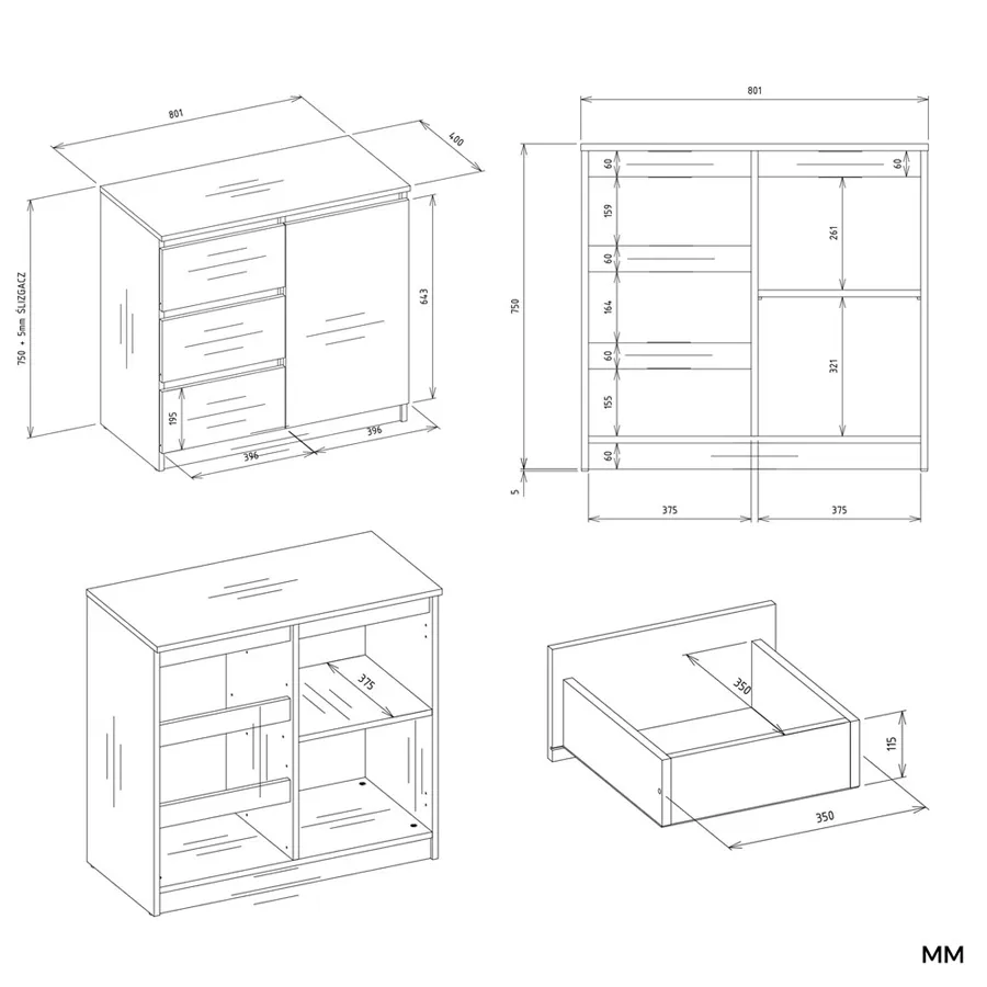 Dotyczy: Nowoczesna komoda z szufladami antracyt + dąb artisan - Promesos 3X
