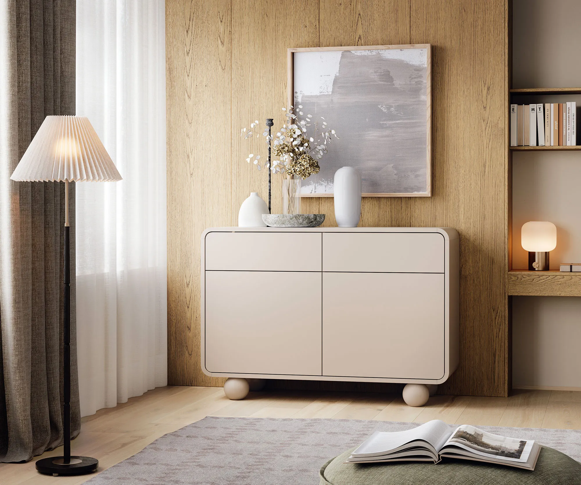Wnętrze z wykorzystaniem kaszmirowej komody Feviso 3X