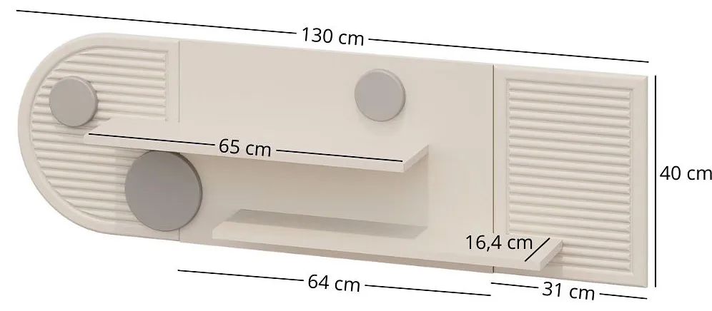 • Szerokość: 130 cm, wysokość: 40 cm, głębokość 19,6 cm.