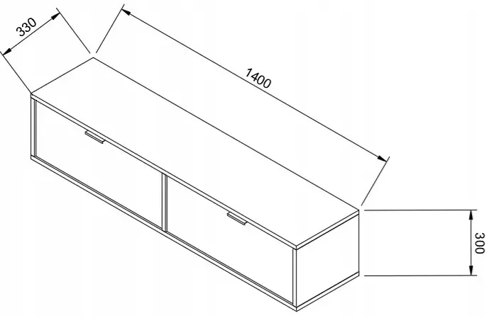 • szerokość: 140 cm, głębokość: 33 cm, wysokość: 30 cm
