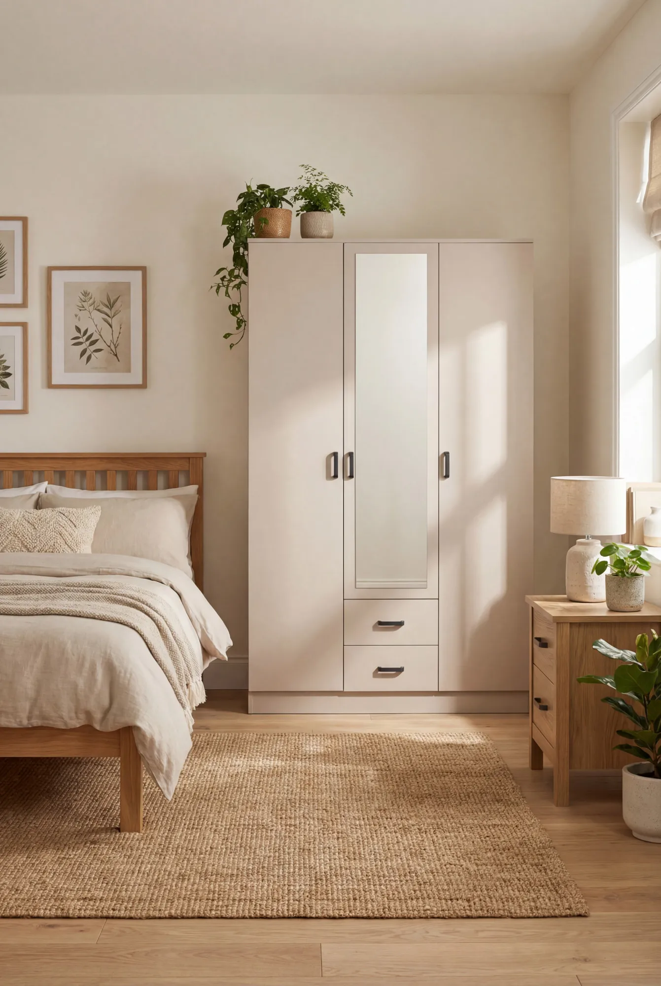 Kaszmirowa szafa trzydrzwiowa z lustrem i szufladami - Montixa