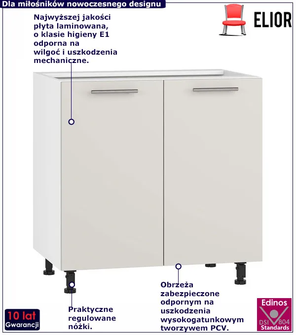 - Kolor: Front w kolorze kaszmiru, biały korpus. Uchwyty metalowe - chromowane. Kliknij i sprawdź także inne szafki kuchenne w sklepie Edinos.pl. Stwórz swój praktyczny zestaw mebli.