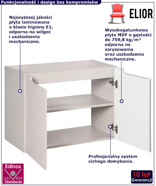 • Kolor: Cashmere. Sprawdź także inne szafki łazienkowe wiszące w sklepie Edinos.pl. Stwórz swój praktyczny zestaw mebli.