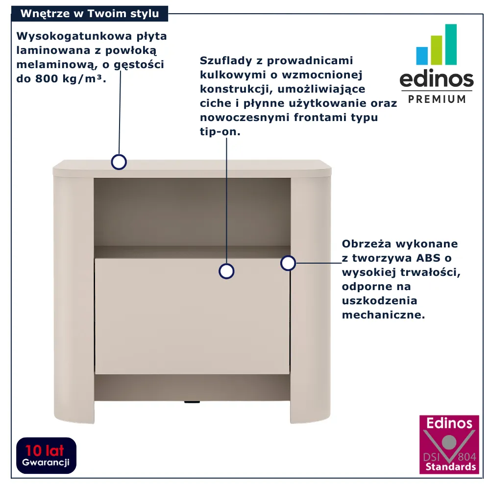 Zamawiając produkt w sklepie Edinos.pl otrzymujesz 100% gwarancję satysfakcji. Jeśli uznasz, że produkt zakupiony u nas nie spełnia Twoich oczekiwań, możesz zwrócić go do nas w ciągu 100 dni od daty zakupu, a my oddamy Ci pełną kwotę zamówienia. Ustawowo czas ten wynosi tylko 14 dni, ale jesteśmy tak pewni Twojego zadowolenia z naszych produktów, że postanowiliśmy wydłużyć ten termin do 100 dni, bo wierzymy, że dobre wnętrze nie potrzebuje słów. Czasem wystarczy jeden mebel, by poczuć się naprawdę u siebie. Dlatego tworzymy rzeczy, które nie dominują – ale współistnieją z Tobą. Są trwałe, wygodne, piękne w prostocie. Dają wolność wyboru i spokój w codziennym życiu. Dziekujemy za zaufanie.