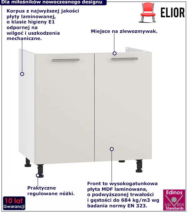 - Kolor: Front w kolorze kaszmiru, biały korpus. Uchwyty metalowe - chromowane. Kliknij i sprawdź także inne szafki kuchenne w sklepie Edinos.pl. Stwórz swój praktyczny zestaw mebli.