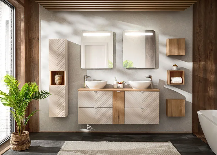 Kolekcja mebli Virello to harmonijne połączenie elegancji i funkcjonalności, stworzone z myślą o nowoczesnych łazienkach. Znajdziesz w niej różnego rodzaju szafki pod umywalkę oraz praktyczny słupek, które razem tworzą spójną i estetyczną całość. Charakterystyczne frezowane fronty w jodełkę nadają meblom wyrazistego stylu, a kompaktowe formy doskonale sprawdzają się zarówno w większych, jak i mniejszych wnętrzach. Virello to kolekcja, która porządkuje przestrzeń i nadaje jej wyjątkowy rytm.