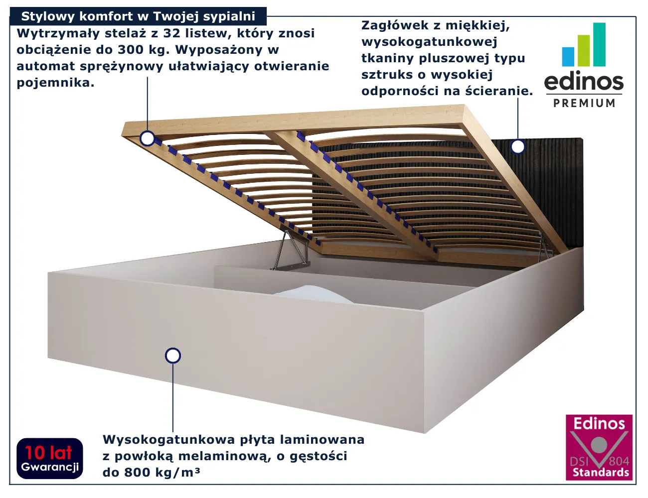 • Łóżko posiada materac i stelaż z 32 listew odpowiedni dla łóżka dwuosobowego, który znosi obciążenie do 300 kg.