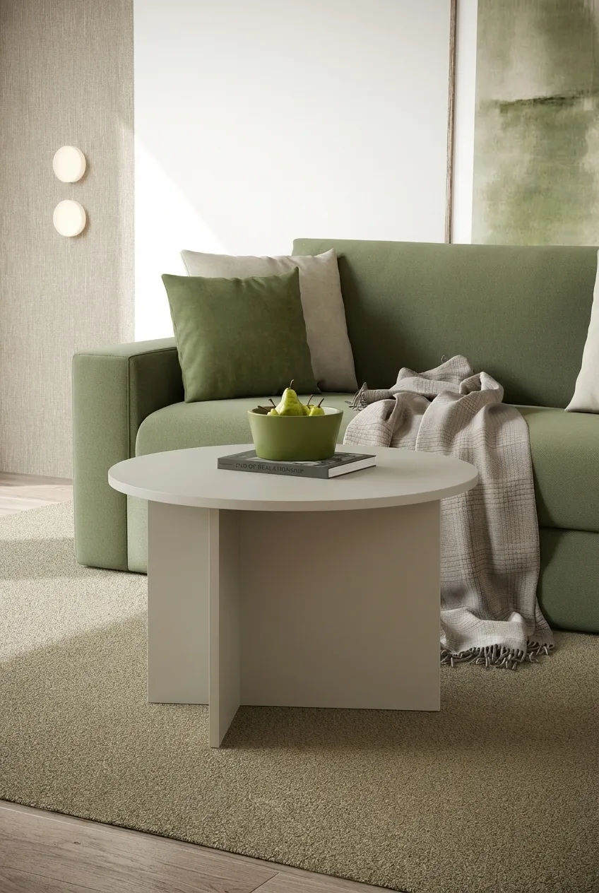 Kaszmirowy okrągły minimalistyczny stolik - Velmorix 4X