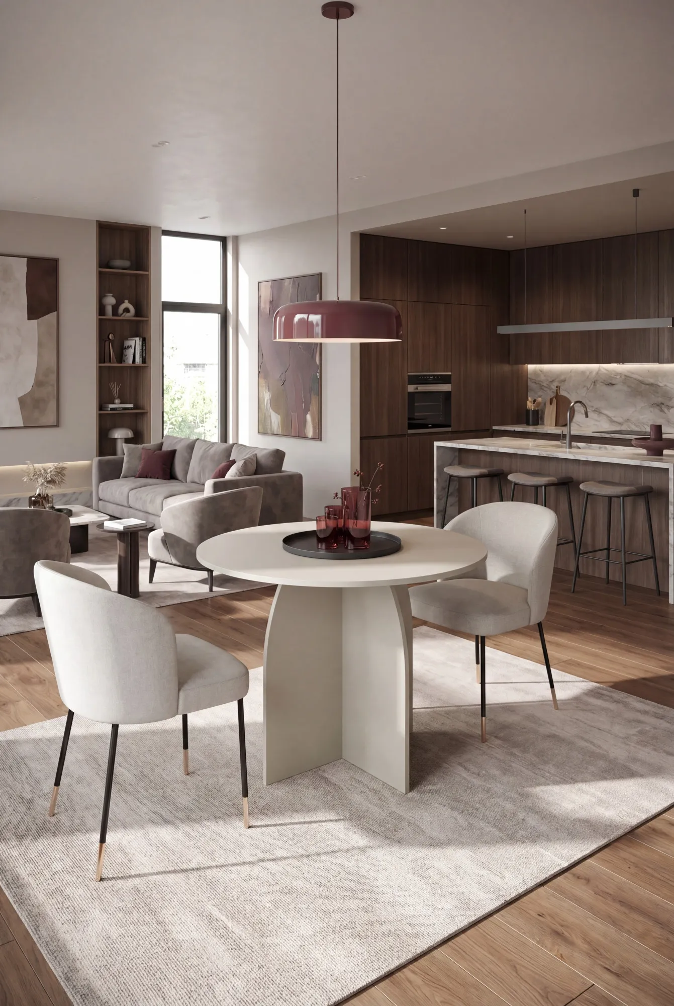 Aranżacja salonu z kaszmirowym stołem Orvessa