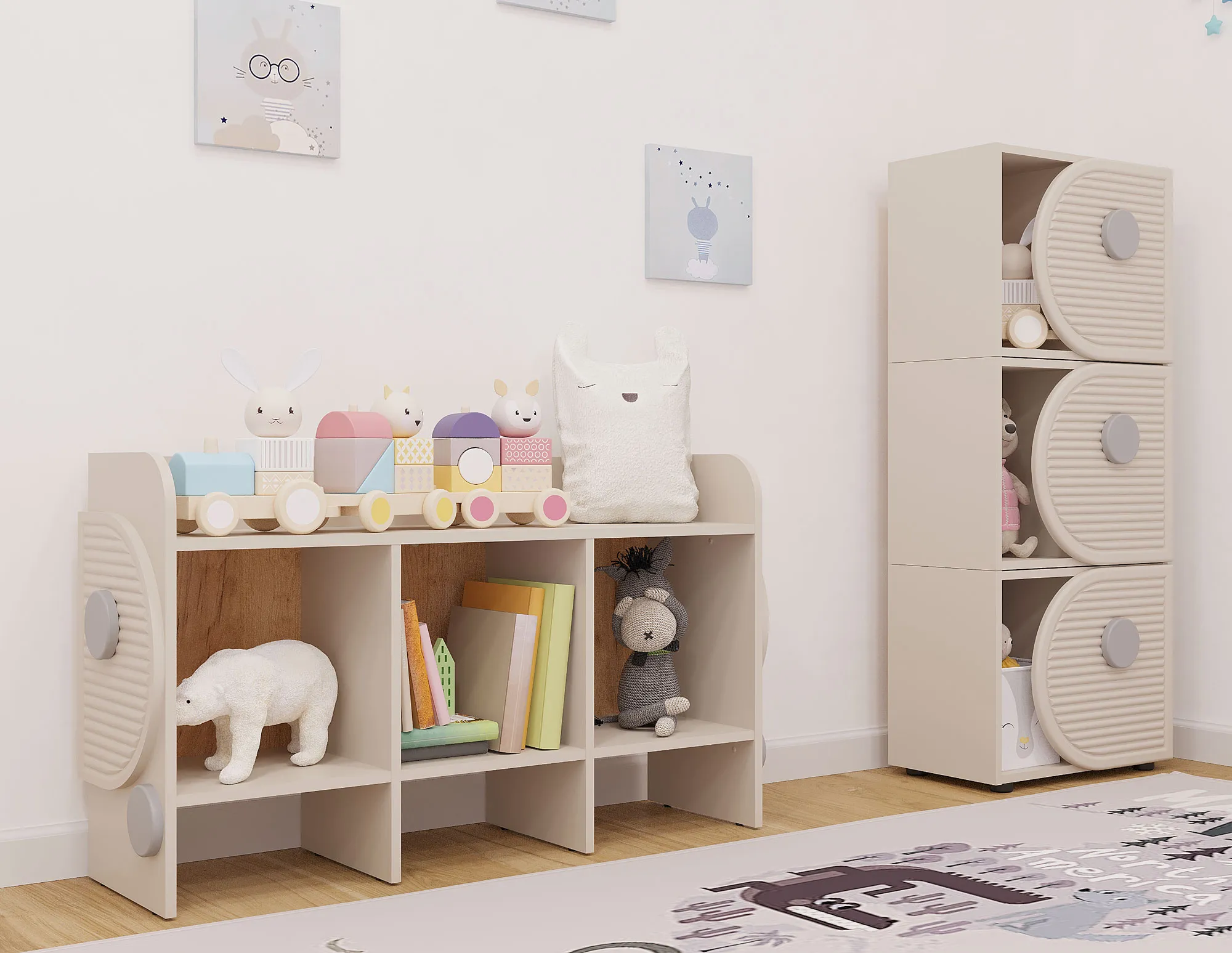 Bardzo praktyczny i funkcjonalny mebel. Dzięki modułom mogłam dopasować rozmiar do przestrzeni w pokoju. Kolor kaszmir to trafiony wybór łagodny i uniwersalny. Regał trzyma się pewnie, półki mieszczą książki i pudełka bez obciążania. Jestem zadowolona z efektu — dziecko ma gdzie schować zabawki, a pokój wygląda schludnie.