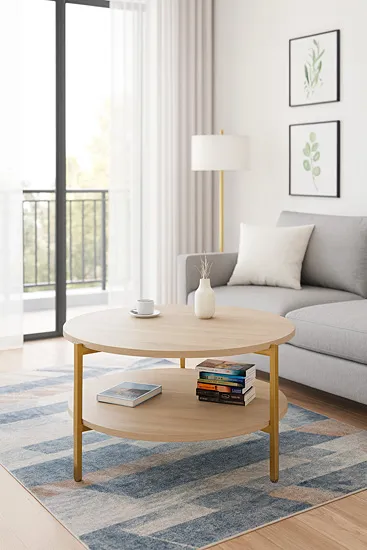 Dotyczy: Stolik kawowy na złotym stelażu dąb artisan - Fablle 5X
