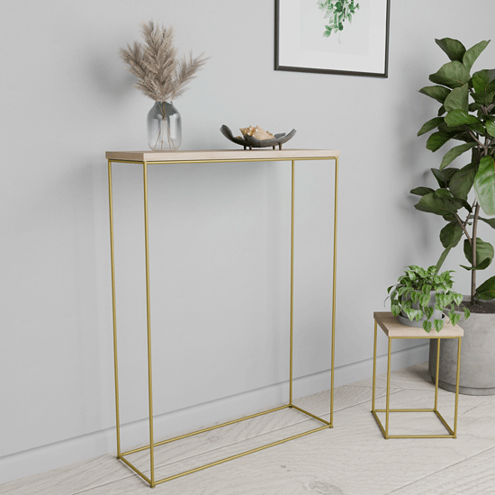 Klasyczna konsola na złotym stelażu w kolorze dąb sonoma - Krux 5X