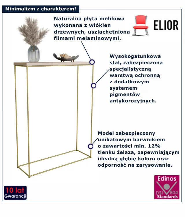 • Kolor: stelaż - złoty, blat - dąb sonoma.