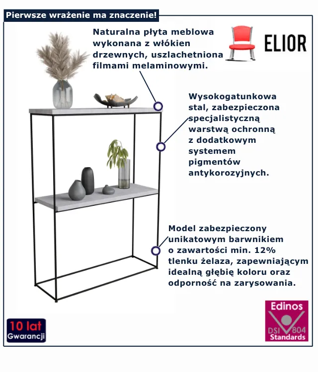 Wyobraź sobie przedpokój, w którym już przy wejściu czeka na Ciebie porządek i styl. Kilka dekoracyjnych dodatków na górnej półce, koszyk na klucze lub świeca – a wszystko na tle subtelnej, eleganckiej konsoli, która nie dominuje, ale dopełnia wnętrze. Dzięki przemyślanej konstrukcji sprawdzi się nawet tam, gdzie liczy się każdy centymetr. Nie czekaj, aż bałagan znów zdominuje Twoje wnętrze – wybierz Blox 4X marki Edinos Premium i zyskaj nowy wymiar funkcjonalności za jedyne 278 zł. Zobacz, jak łatwo może być pięknie i praktycznie!