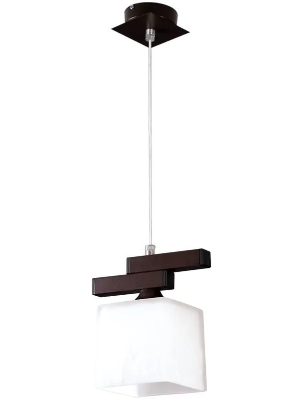 E588-Nossa to klasyczna lampa wisząca z jednym punktem świetlnym. Jej znakiem charakterystycznym jest sześcienny szklany klosz, oraz oryginalna oprawa w kolorze wenge. Produkt został wykonany z materiałów najwyższej jakości, dzięki czemu świetnie się prezentuje zachowując walory niezawodności. Szczególnie polecany do stylowych wnętrz.