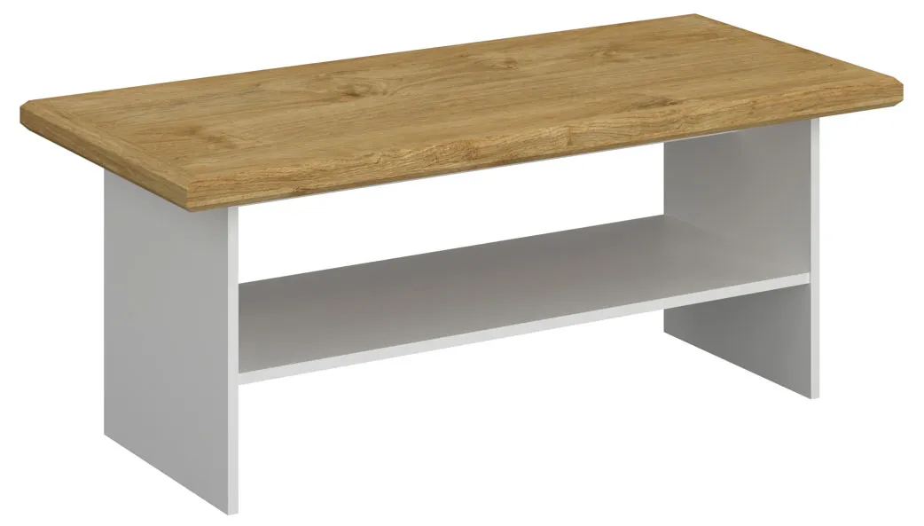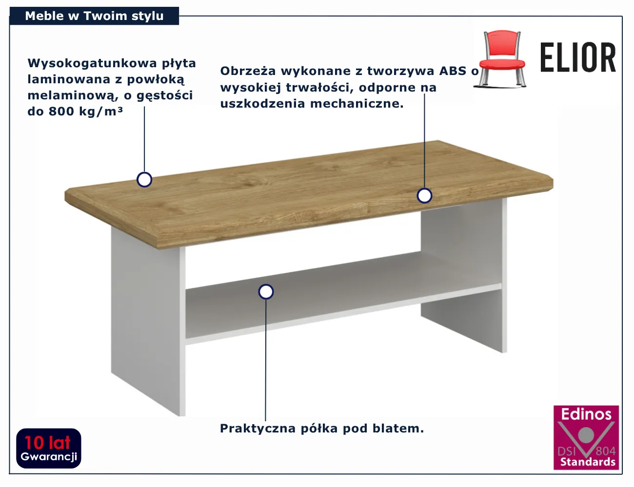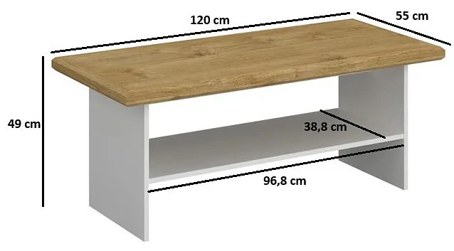 Klasyczna ława z półką biały + dąb harbor - Epium 5X
