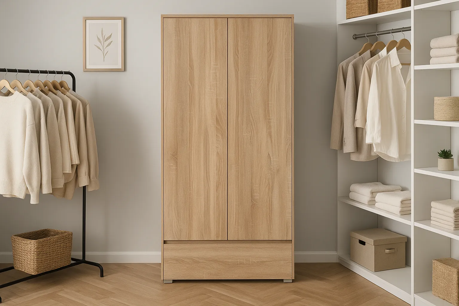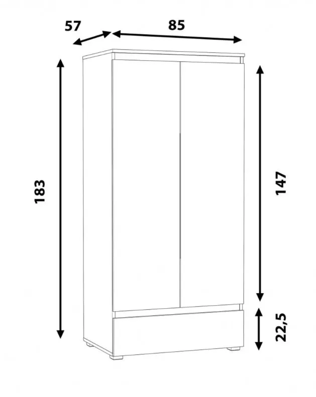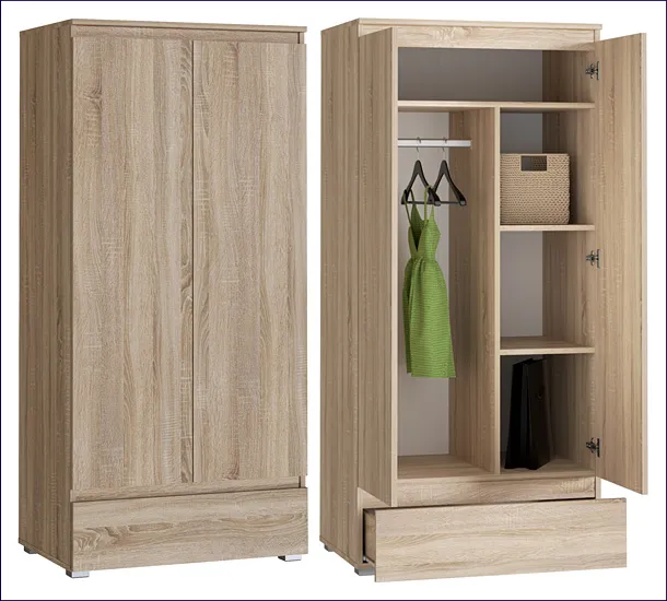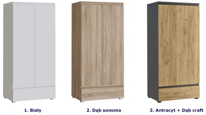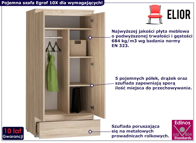 Dotyczy: Szafa z drążkiem i półkami na nóżkach z gładkim frontem antracyt + dąb craft - Elsinor 10X