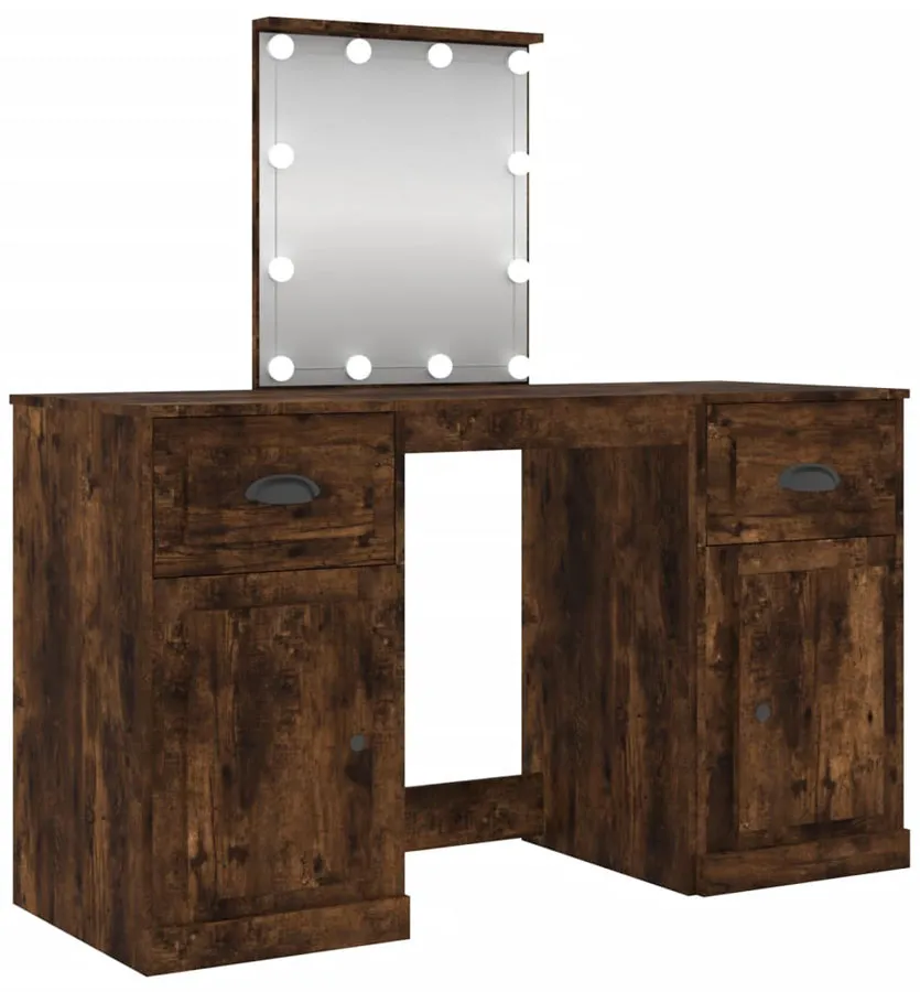 Klasyczna toaletka z lustrem podświetlanym przydymiony dąb - Calmo 4X