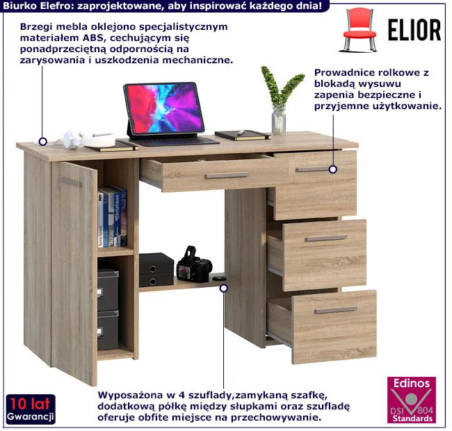 Biurko Efefro od Edinos Premium zapewnia wiele korzyści, które czynią je idealnym wyborem dla każdego miejsca pracy lub nauki: