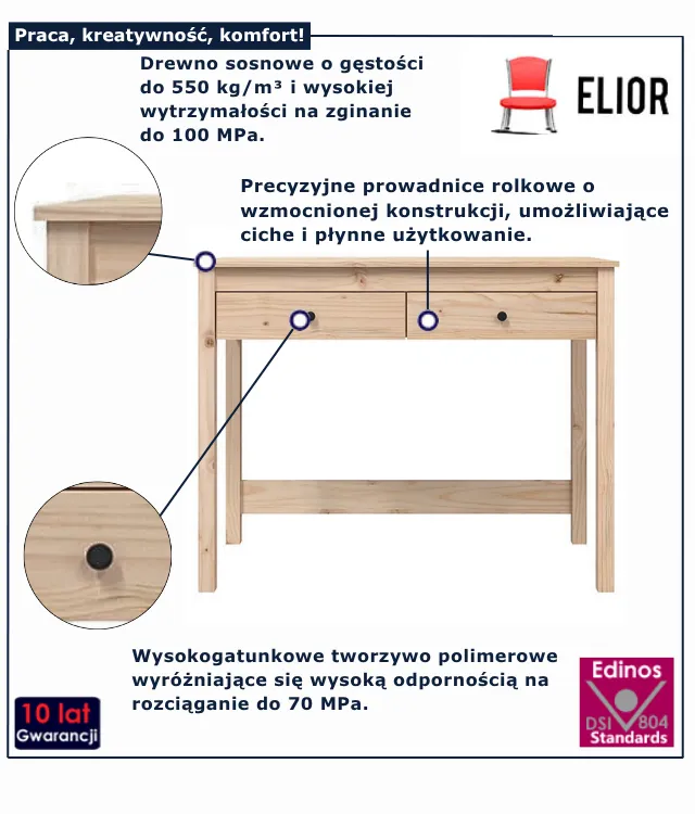• Ergonomiczny blat zapewniający wygodę podczas pracy lub nauki.