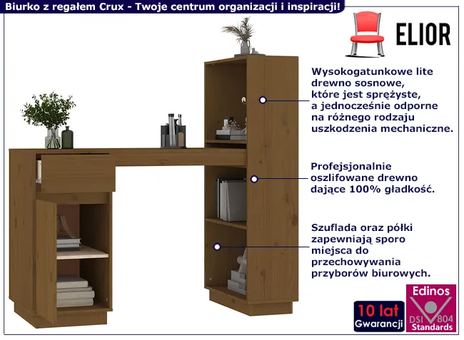 Dotyczy: Czarne drewniane biurko z regałem i szufladą - Dronos
