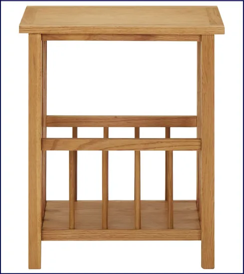 Świetny wybór do salonu lub sypialni! Gazetownik jest kompaktowy, ale jednocześnie pojemny, dzięki czemu łatwo utrzymać porządek z prasą czy książkami. Naturalne drewno daje przyjemny efekt wizualny i dobrze komponuje się z innymi meblami, a całość sprawia wrażenie trwałej i dopracowanej.