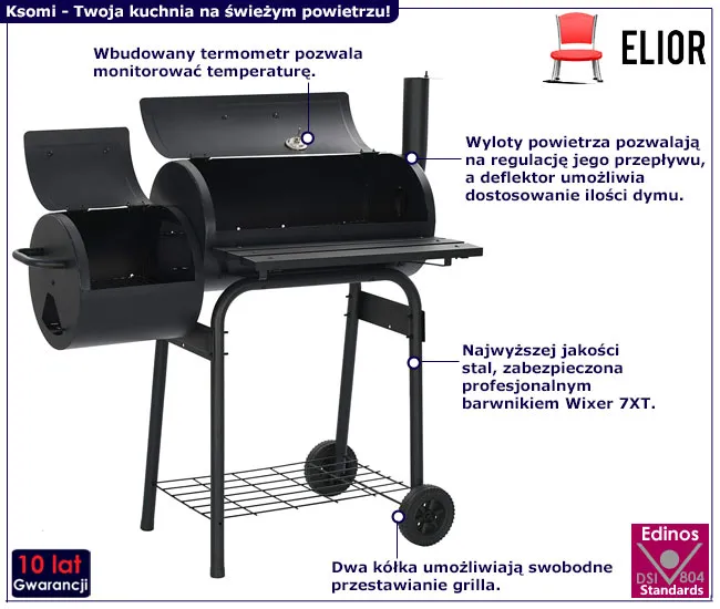 • Solidne i niezawodne, idealne do wędzenia palenisko boczne.