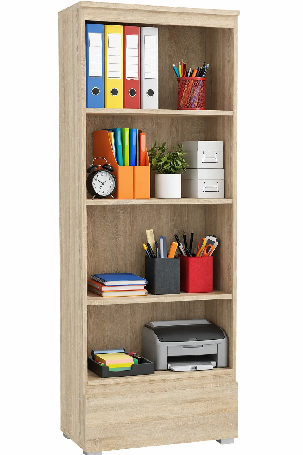 Regał świetnie się prezentuje, a kolor dąb sonoma jest bardzo uniwersalny. Szuflada jest pojemna i wygodna w użyciu, a cała konstrukcja stabilna. Idealny do przechowywania książek i dekoracji. W tej cenie trudno o coś lepszego dlatego zdecydowanie polecam.