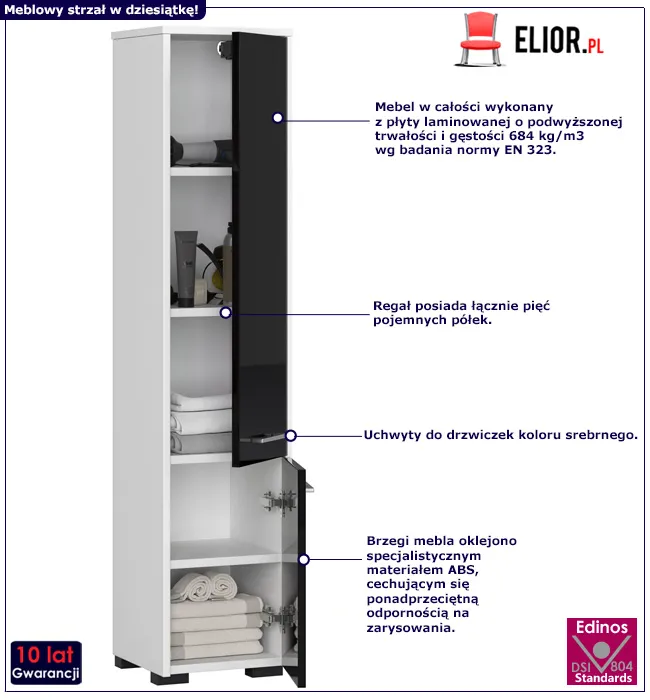 Dotyczy: Biały regał łazienkowy w połysku z półkami - Jowila 4X