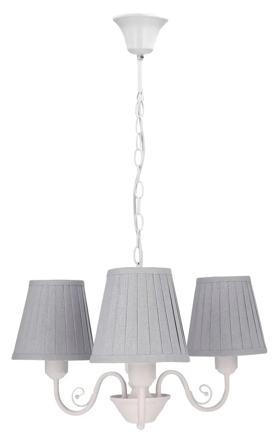 Klasyczny żyrandol z 3 abażurami szary + biały - Z066-Nadir
