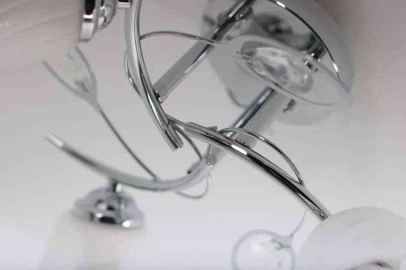 Żyrandol EX43-Atroks to perfekcyjne połączenie metalu i szkła. Dzięki prostej, jasnej palecie barw lampa uzyskała niezmiernie estetyczny wygląd. Szklane klosze z wytłoczonym roślinnym wzorem niczym magnes przyciągają spojrzenia. Lampa została wykonana z najwyższej jakości materiałów, dzięki czemu jest niezwykle wytrzymała i solidna. Szczególnie polecana do klasycznych, eleganckich wnętrz.