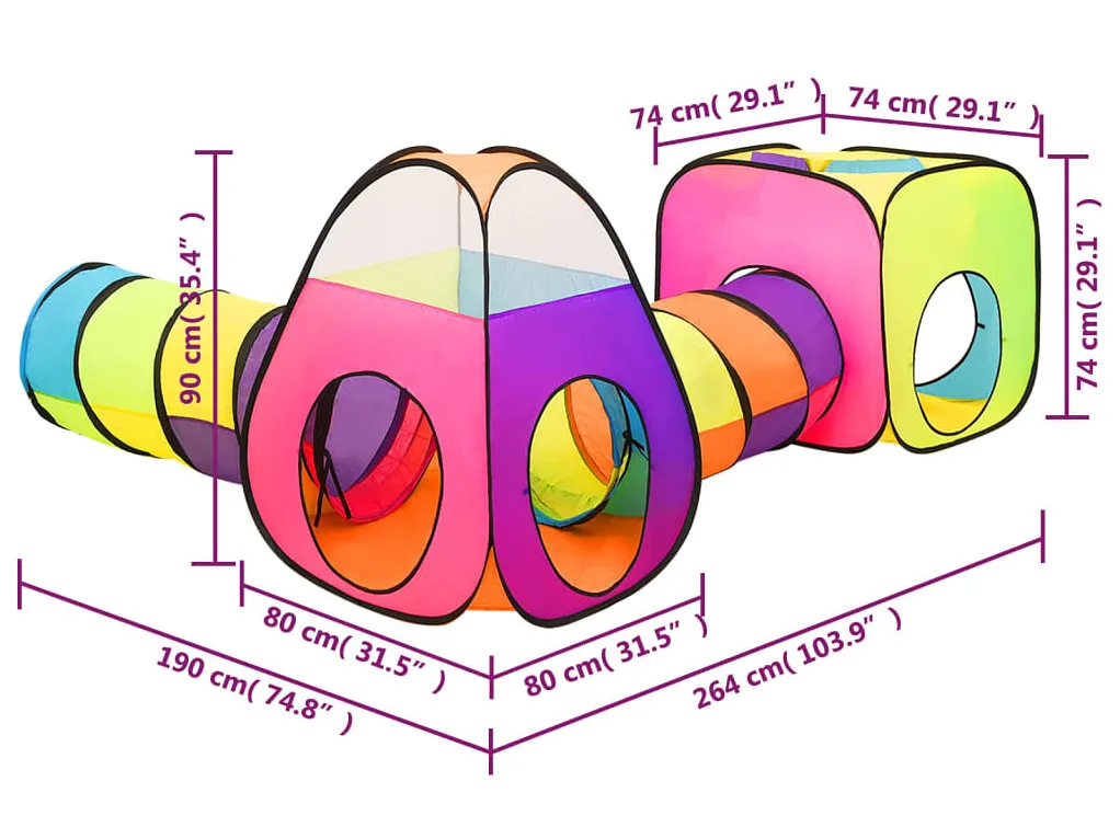 • Wymiary tunelu do zabawy (każdego): 46 x 110 cm (śr. x dł.)