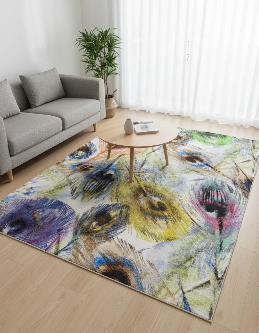 Kolorowy prostokątny dywan w pawie pióra - Aben