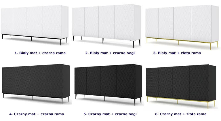 Dotyczy: Komoda czarny mat + złota rama - Nevia 6X