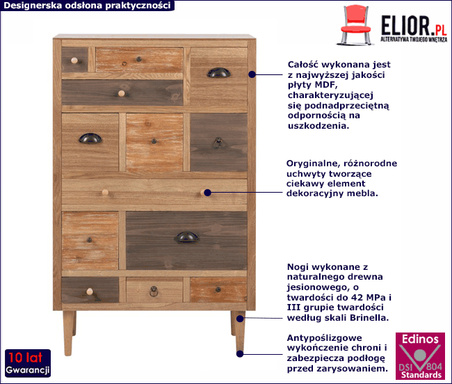 • Modny kolor: jesion. Zobacz także inne komody w stylu skandynawskim w ofercie sklepu Edinos.pl i skomponuj swój wymarzony zestaw mebli.
