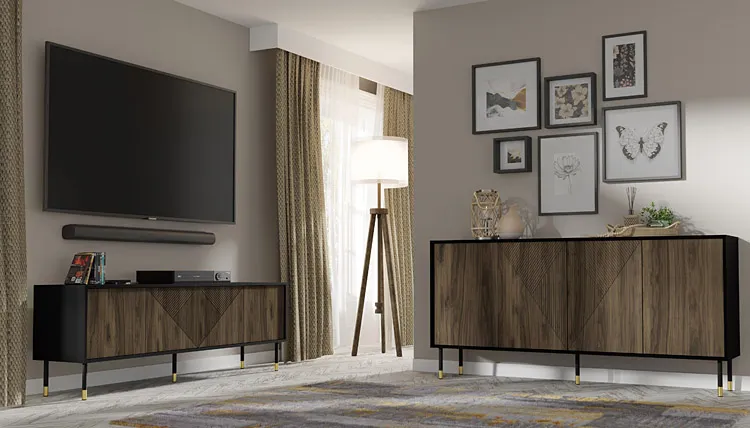 Dotyczy: Komoda z frezowanym frontem czarny + dąb catania - Nadia 3X