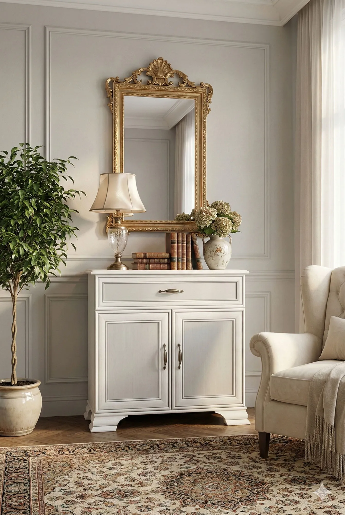 Klasyczne wnętrze z wykorzystaniem eleganckiej komody Traviosa 3X fineline crema