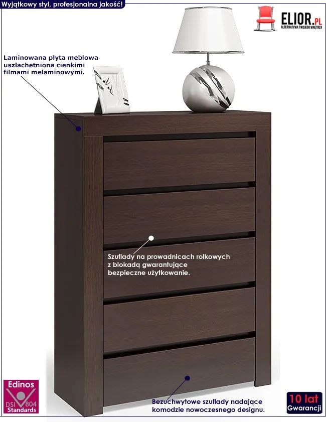 Komfortowa komoda z 5 szufladami wenge Margino 2X