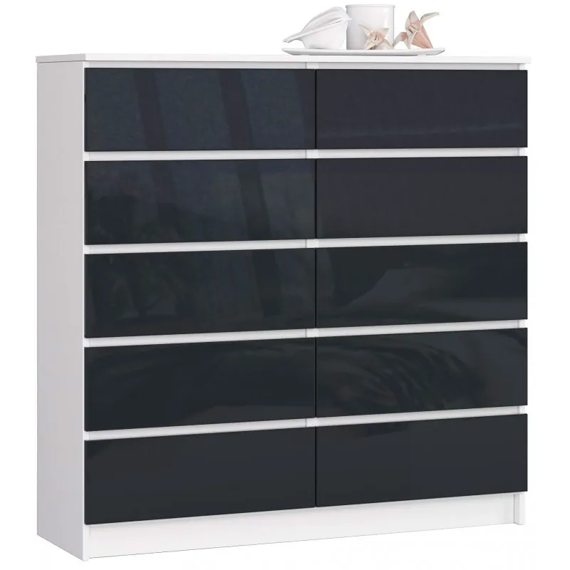 - Kolor: fronty w kolorze grafit- połysk oraz korpus w kolorze biały- mat. Kliknij w link i sprawdź także inne komody w sklepie Edinos.pl. Stwórz swój praktyczny zestaw mebli.